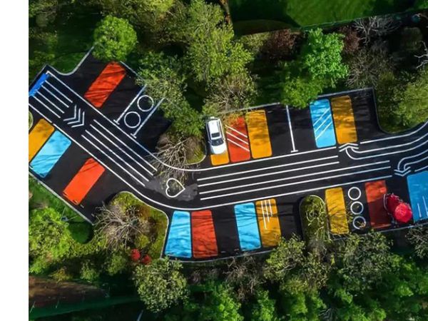 在杭州蕭山區(qū)某商業(yè)綜合體的地下停車場改造項目中,道路施工隊再采用傳統(tǒng)的道路施工方案基礎上有巧妙的運用紅藍雙色瀝青進行功能分區(qū)。紅色區(qū)域?qū)iT劃定為新能源車充電車位,藍色區(qū)域則標識無障礙車位。這種鮮明的色差對比,讓車主能夠迅速定位目標車位,大大減少了在停車場內(nèi)徘徊尋找的時間??梢哉f彩色瀝青道路在停車場實現(xiàn)了功能分區(qū)與安全警示的完美融合
